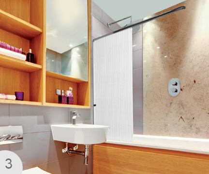 Coated with a specialist dual treatment, the screen dries quickly and can be folded away, restoring the beautiful surroundings of your bathroom environment whilst providing a feeling of ‘open space’.